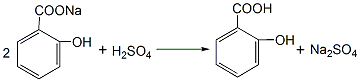 量活性炭,煮沸,趁熱過濾,濾液冷卻重復用蒸餾水溶解,過濾、甩干數次,即可得純品水楊酸。所得水楊酸粗品也可用減壓升華精制。過程反應式為:
