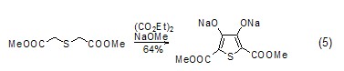 合成噻吩類化合物  在堿的條件下,乙二酸二乙酯與β-硫醚二酯類化合物可合成噻吩衍生物 (式5)[10],采用類似方法也可合成硒代噻吩衍生物[11]。
